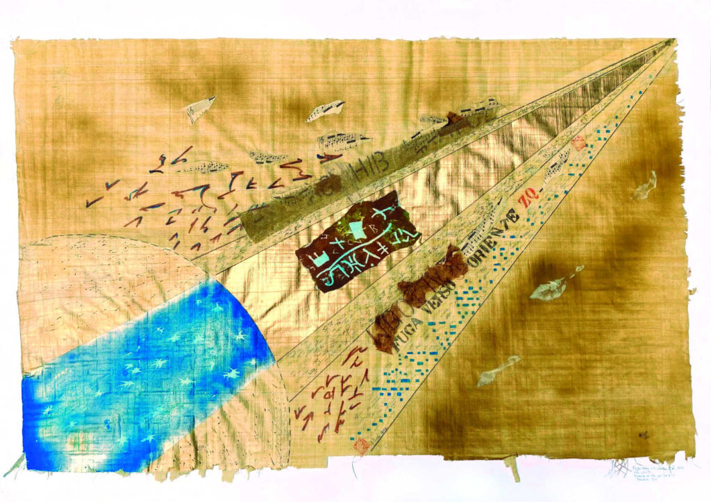 Pittura, carte diverse su papiro originale cm 61×96, su cartoncino cm 72×120