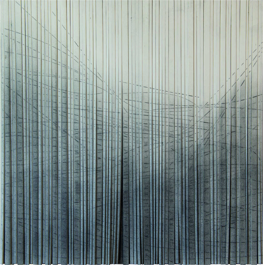 Strisce di cartone, matita, grafite in polvere, cm 40×40